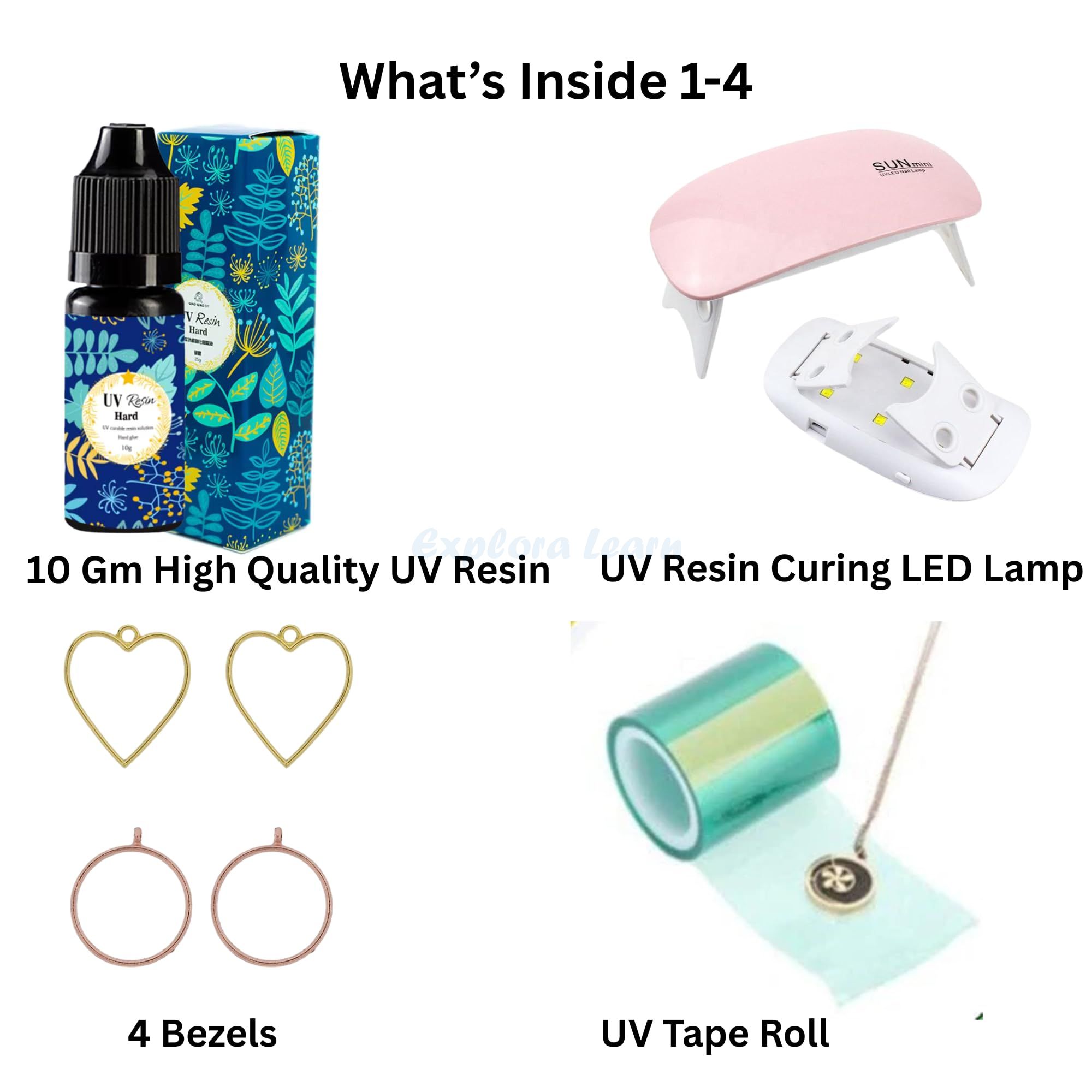 Exploralearn Mini UV Resin Jewellery Kit is a compact, beginner-friendly DIY set designed to help you start resin jewellery making quickly and easily. Perfect for creating pendants and charms with a fast-curing process.