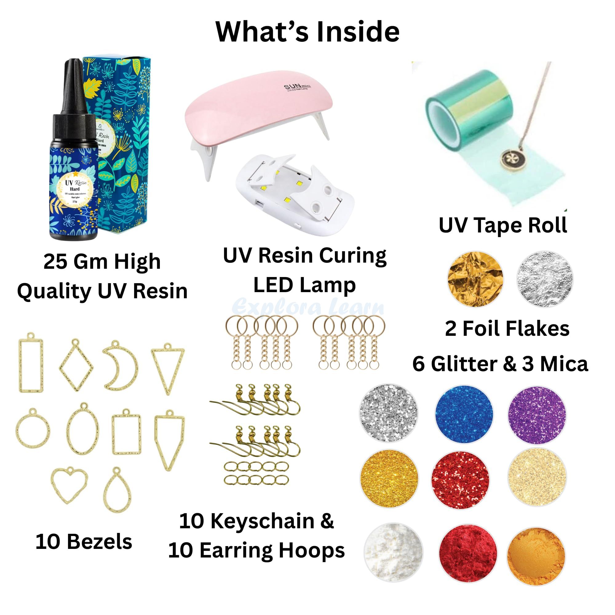 Exploralearn UV Resin Jewellery Making Kit is a complete beginner-friendly DIY set that helps you create stunning resin jewellery and accessories in minutes. Design earrings, pendants, keychains and more with vibrant colours, shimmer and unique textures.