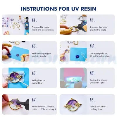 Includes 25g hard UV resin and a UV/LED curing light for instant results. Simply pour, decorate and cure within minutes — quick, clean and hassle-free.