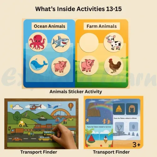 Includes puzzles, matching, sorting, sequencing and pretend play activities with large, easy-to-hold pieces designed specially for toddlers.