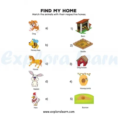 Animals Worksheet,Animal and Homes