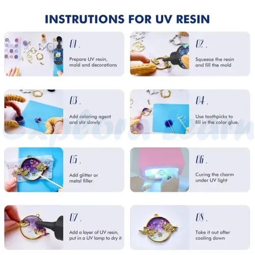 Exploralearn 25gm UV Resin Jewellery Making Set for Beginners | Includes 10 In 1 Embossed Bezels Set, Curing Light, UV Tape for Jewellery