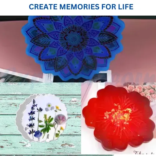 Exploralearn Ultimate Max Resin Art Kit - Mandala, Flower, Agate 3 Coasters with 200 gm Epoxy Resin and Silicone Moulds - Comprehensive Resin Art Materials - Mica, Glitters, and Flakes