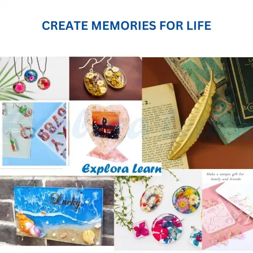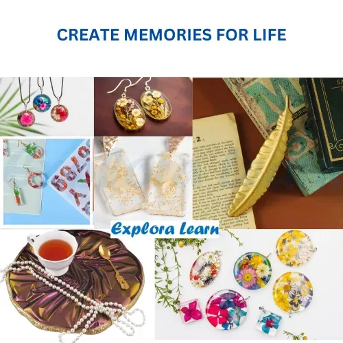 Exploralearn Complete Resin Art Kit -8 inch Plate, DIY Alphabet, Earring, Keychain, Pendant, Coaster and Bookmark with Epoxy Resin and Silicone Moulds - Comprehensive Resin Art Materials - Mica, Glitters, Pigment, Dried flowers and Flakes