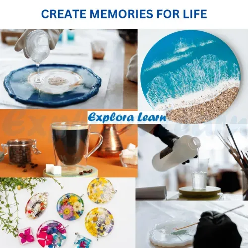 Exploralearn Ultimate Resin Art Kit - DIY Coaster Kit with 200 gm Epoxy Resin and silicone moulds - Comprehensive Resin Art Materials - Mica, Glitters and Flakes | Resin art kit for beginners| Multicolor