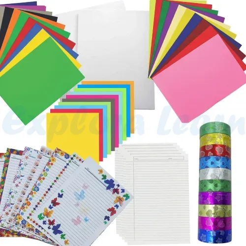 Ultimate A4 School & Craft Material Mega Combo Kit | EVA Foam Sheets, Glitter Sheets, Pastel Papers, Ivory Paper, Origami, Designer Sheets, Decorative & Mosa Tape
