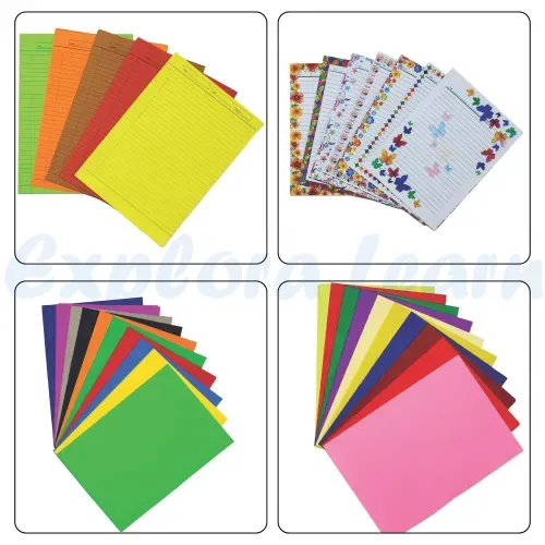 7 Type A4 School Project & Craft Paper Mega Combo Kit | Single Line, White, Pastel, Ivory Paper, Origami, Designer Sheets & Mosa Tape