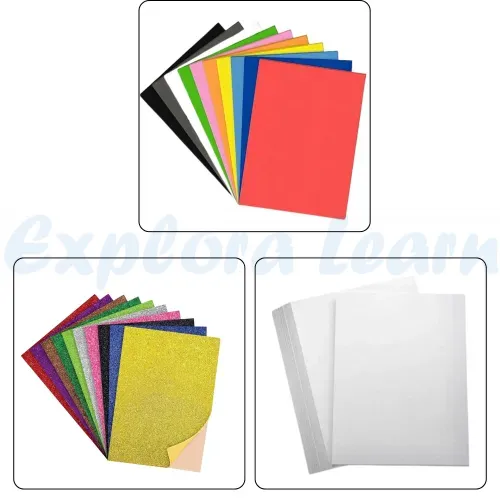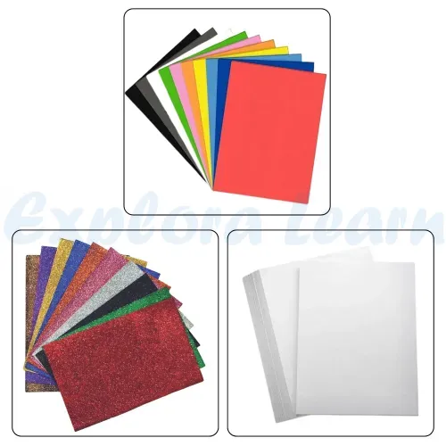 3 Type A4 Craft Paper & DIY Art Material Combo Kit | Glitter Gumming Sheets, EVA Foam, Pastel Paper & Mosa Tape