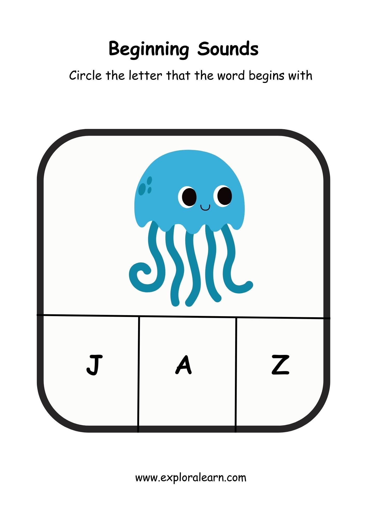 Beginnning Sound Alphabet Worksheet, Practice j. Free Phonics Beginning Sound Worksheet for your child