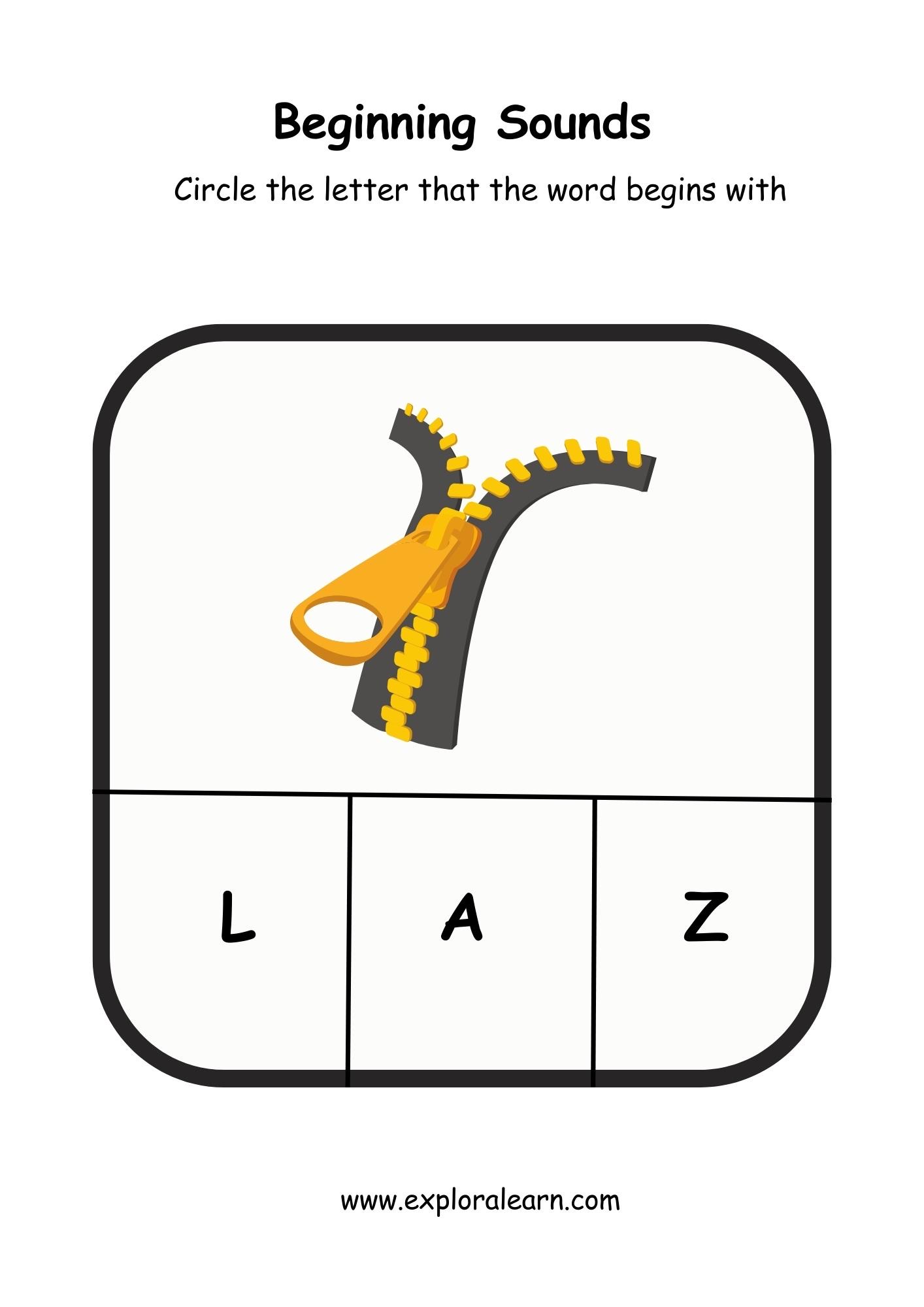 Beginnning Sound Alphabet Worksheet, Practice z. Free Phonics Beginning Sound Worksheet for your child