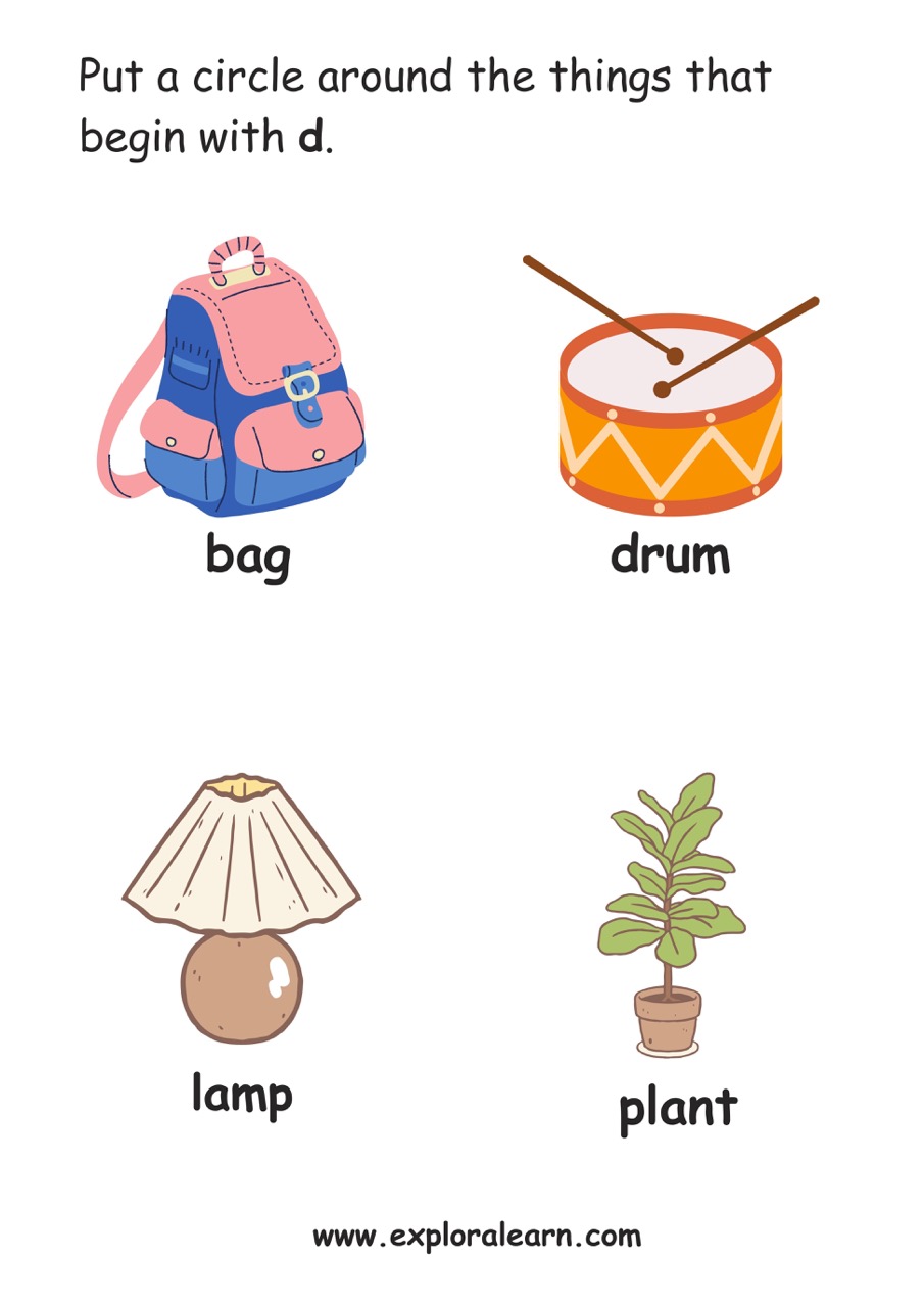 Beginnning Sound Alphabet Worksheet, Practice d. Free Phonics Beginning Sound Worksheet for your child