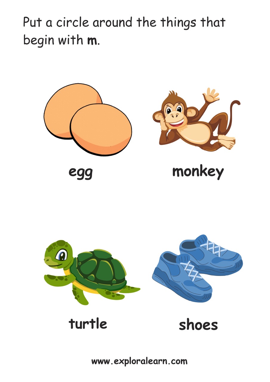 Beginnning Sound Alphabet Worksheet, Practice m. Free Phonics Beginning Sound Worksheet for your child
