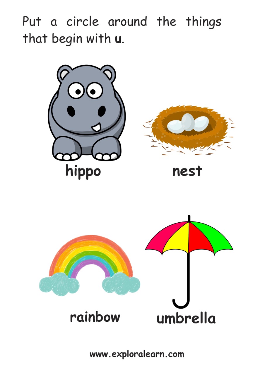 Beginnning Sound Alphabet Worksheet, Practice u. Free Phonics Beginning Sound Worksheet for your child