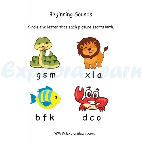 Beginnning Sound Alphabet Worksheet, Practice by Circling the correct sound. Free Phonics Beginning Sound Worksheet for your child