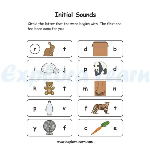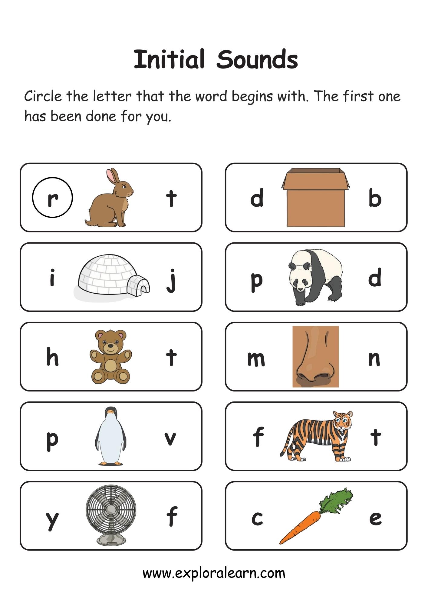 Beginnning Sound Alphabet Worksheet, Practice by Circling the correct sound. Free Phonics Beginning Sound Worksheet for your child