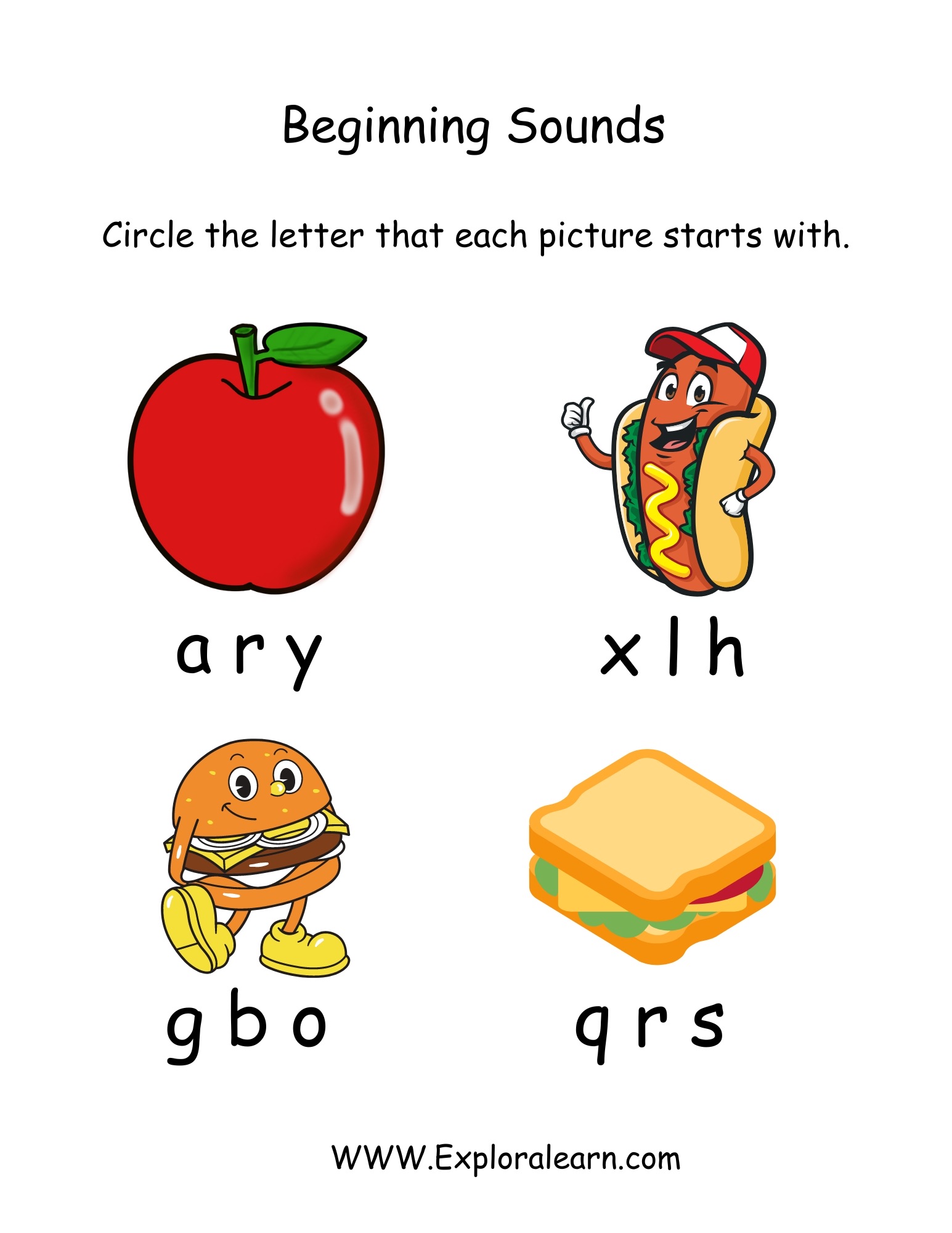 Beginnning Sound Alphabet Worksheet, Practice by Circling the correct sound. Free Phonics Beginning Sound Worksheet for your child