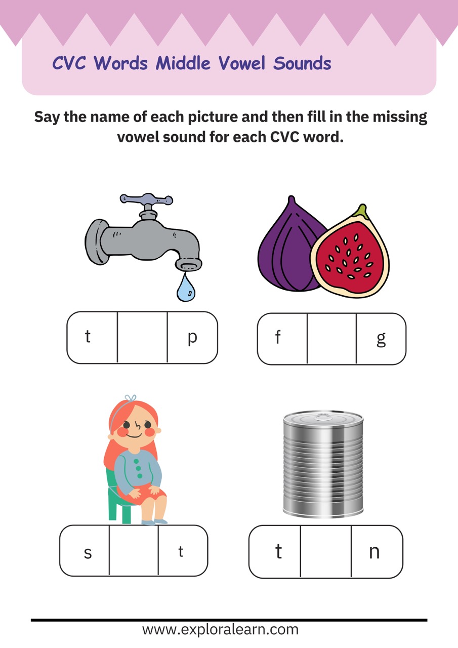 CVC Middle Sound Worksheet for your child