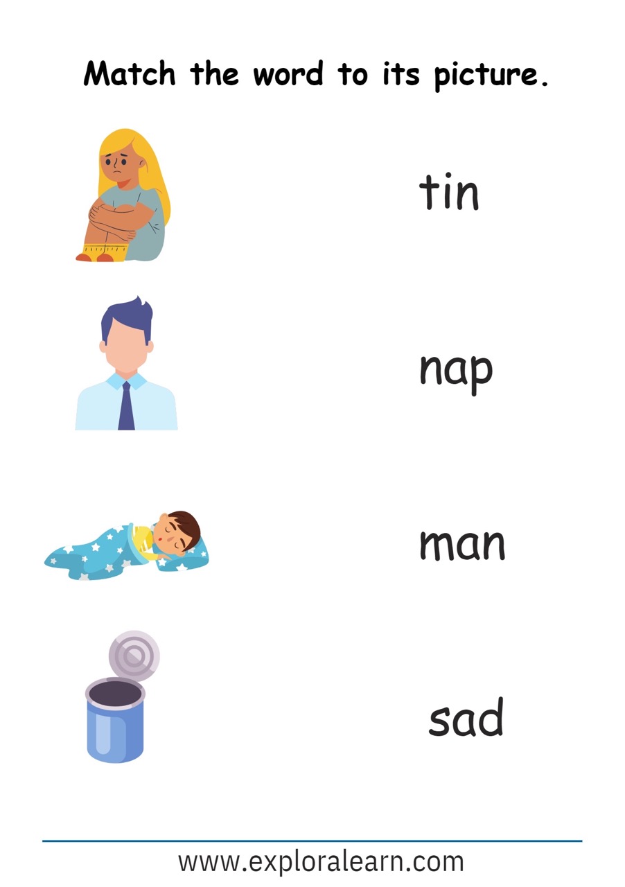 CVC Words Match Worksheet for your child