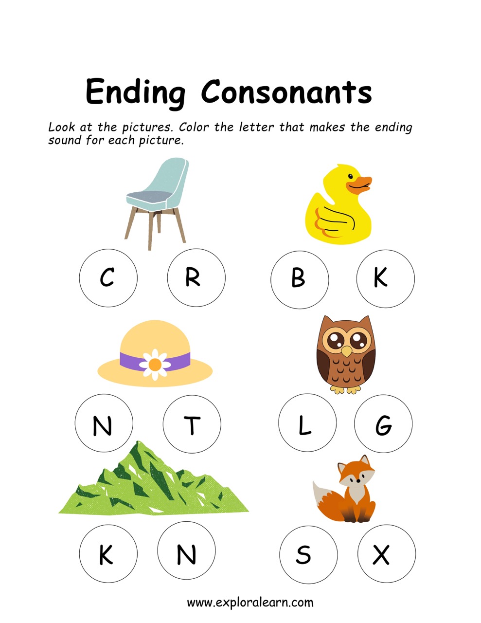 Ending Consonants Worksheet for your child