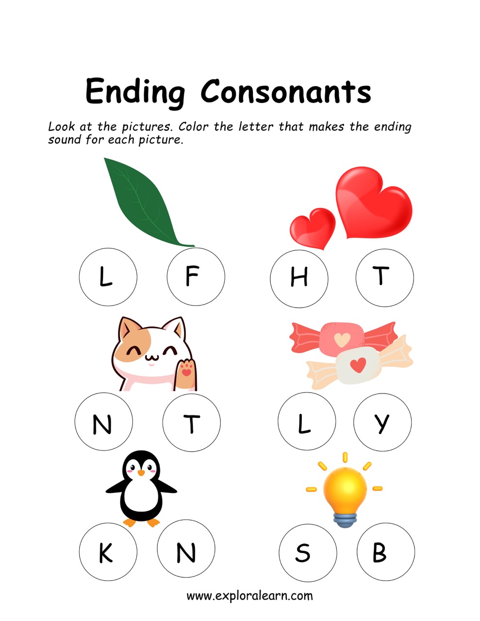 Ending Consonants Worksheet for your child