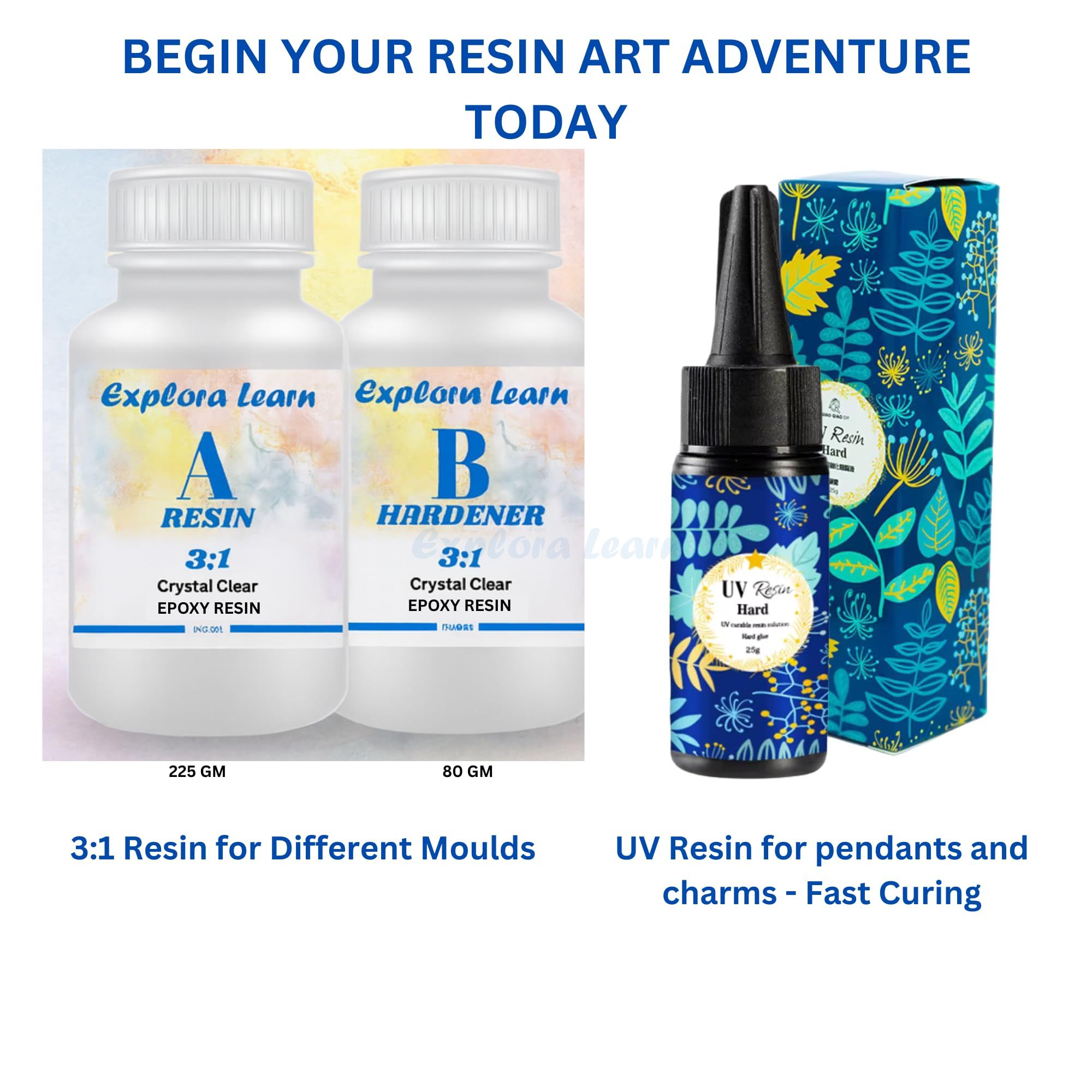 Exploralearn Dual Resin Art Kit combines the power of UV Resin + Epoxy Resin in one complete set. Perfect for quick crafts and detailed creations — giving you flexibility, speed and professional results in a single kit.