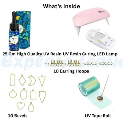 Exploralearn UV Resin Jewellery Making Kit is a beginner-friendly DIY set designed to help you create beautiful resin jewellery quickly and easily. Perfect for making pendants, earrings and charms with a fast-curing process.