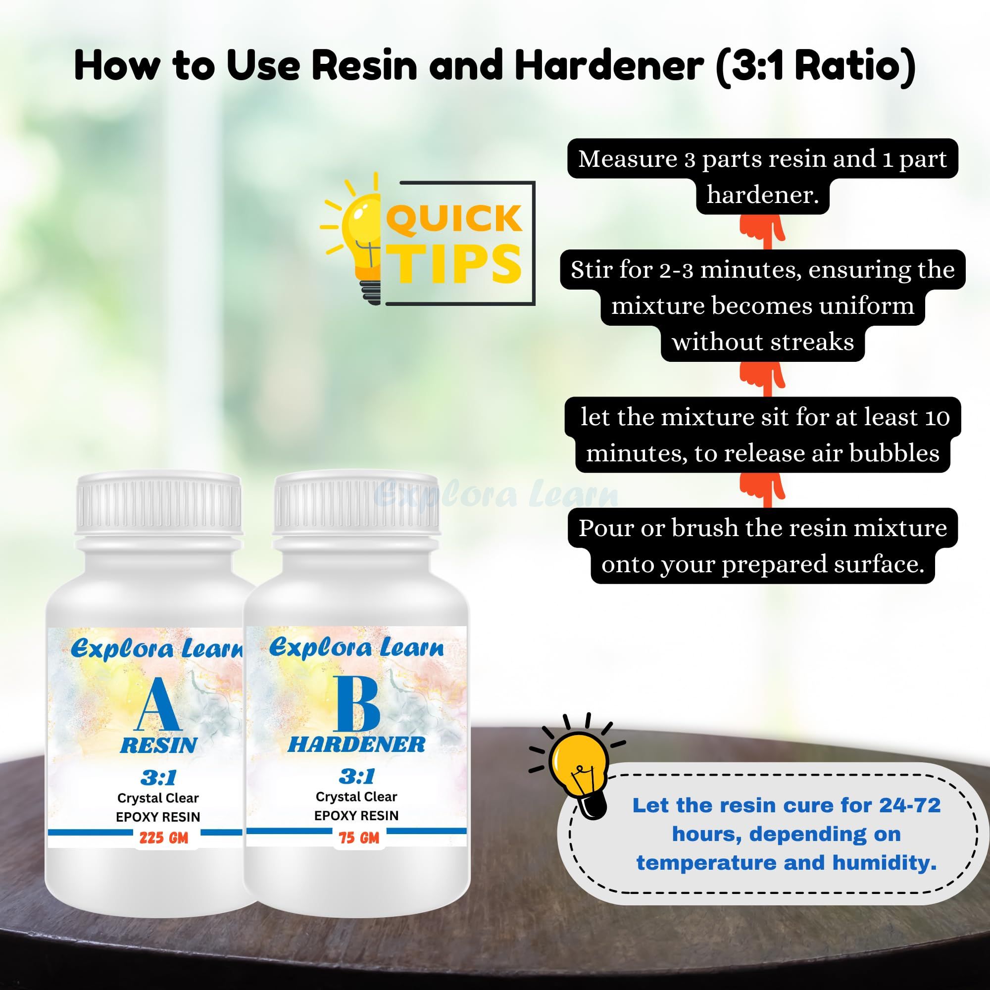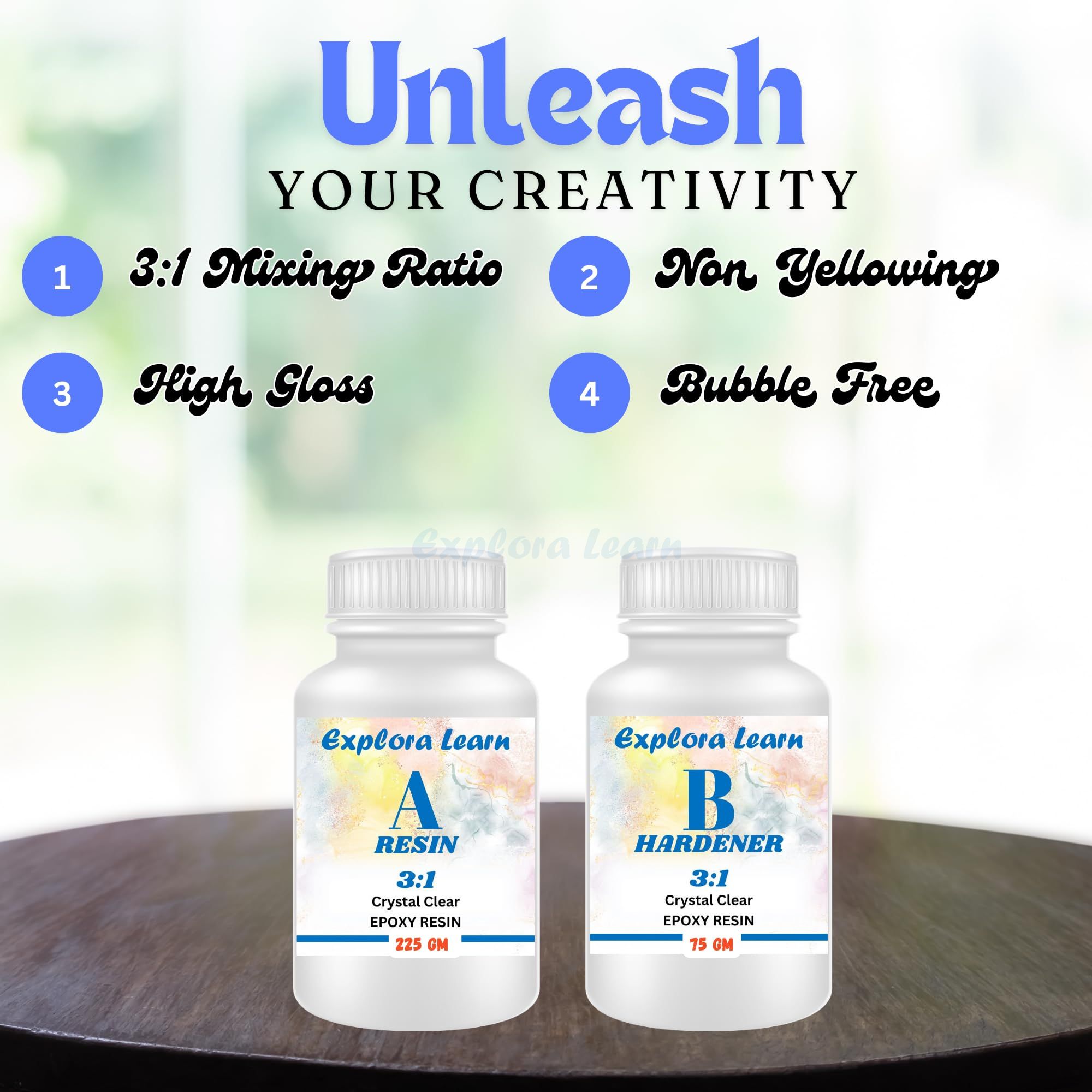 Exploralearn Epoxy Resin (300g) is a premium-quality resin designed to deliver crystal-clear, glossy and professional results. Perfect for beginners and experienced artists looking to create stunning resin art with ease.