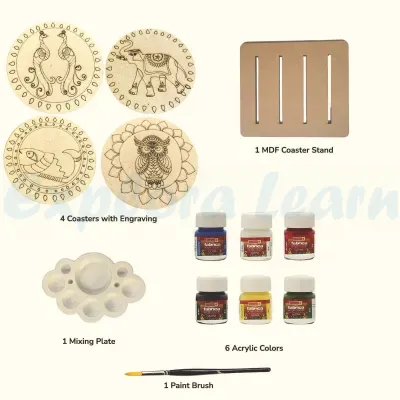 Exploralearn Madhubani Art Kit is a beginner-friendly DIY painting set inspired by the rich heritage of traditional Indian art. Create beautiful Madhubani designs on wooden coasters and bring culture and creativity together.