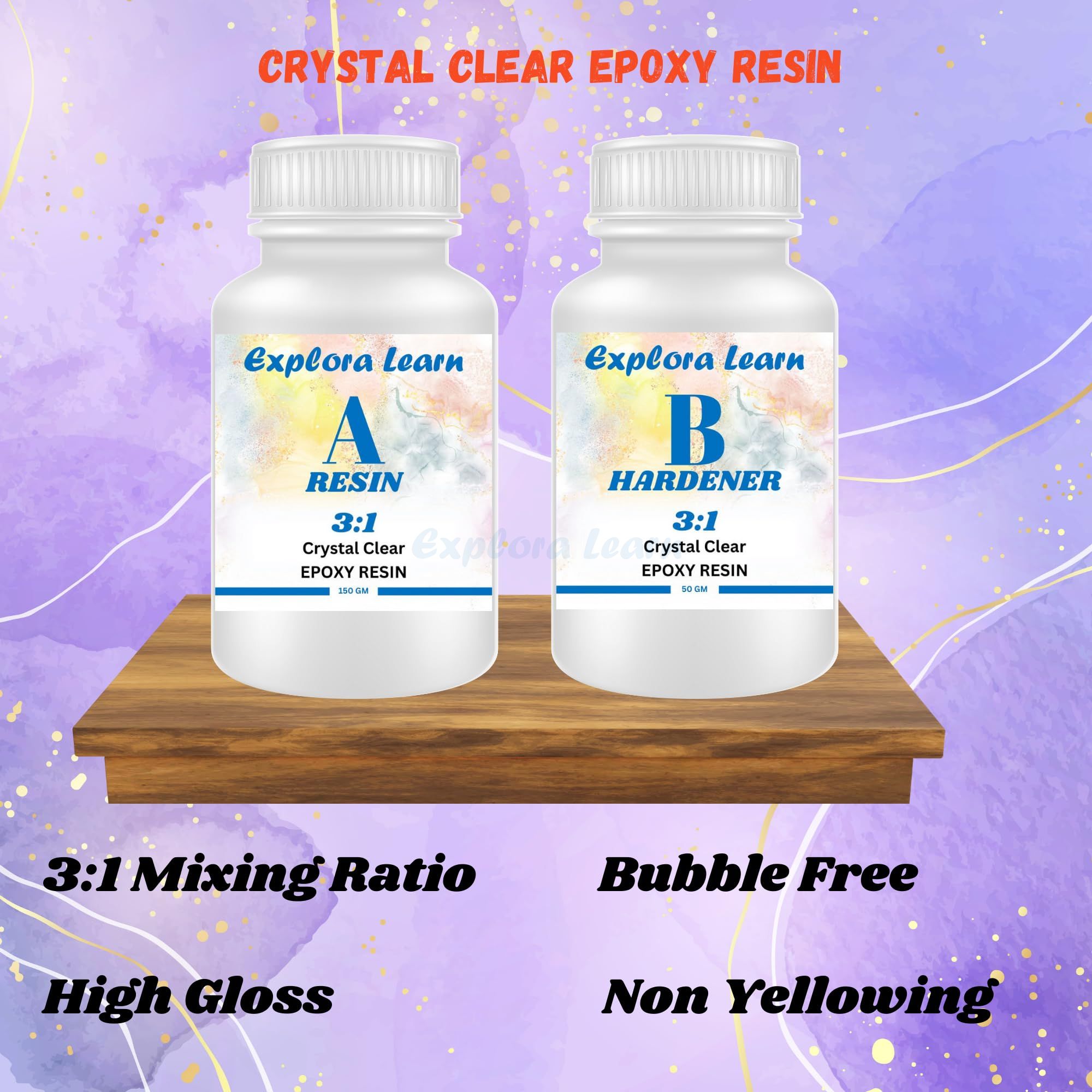 Clear, non-toxic epoxy resin and hardener in a 3:1 ratio. Gives you plenty of working time before it sets, ensuring a smooth, glossy, professional finish.