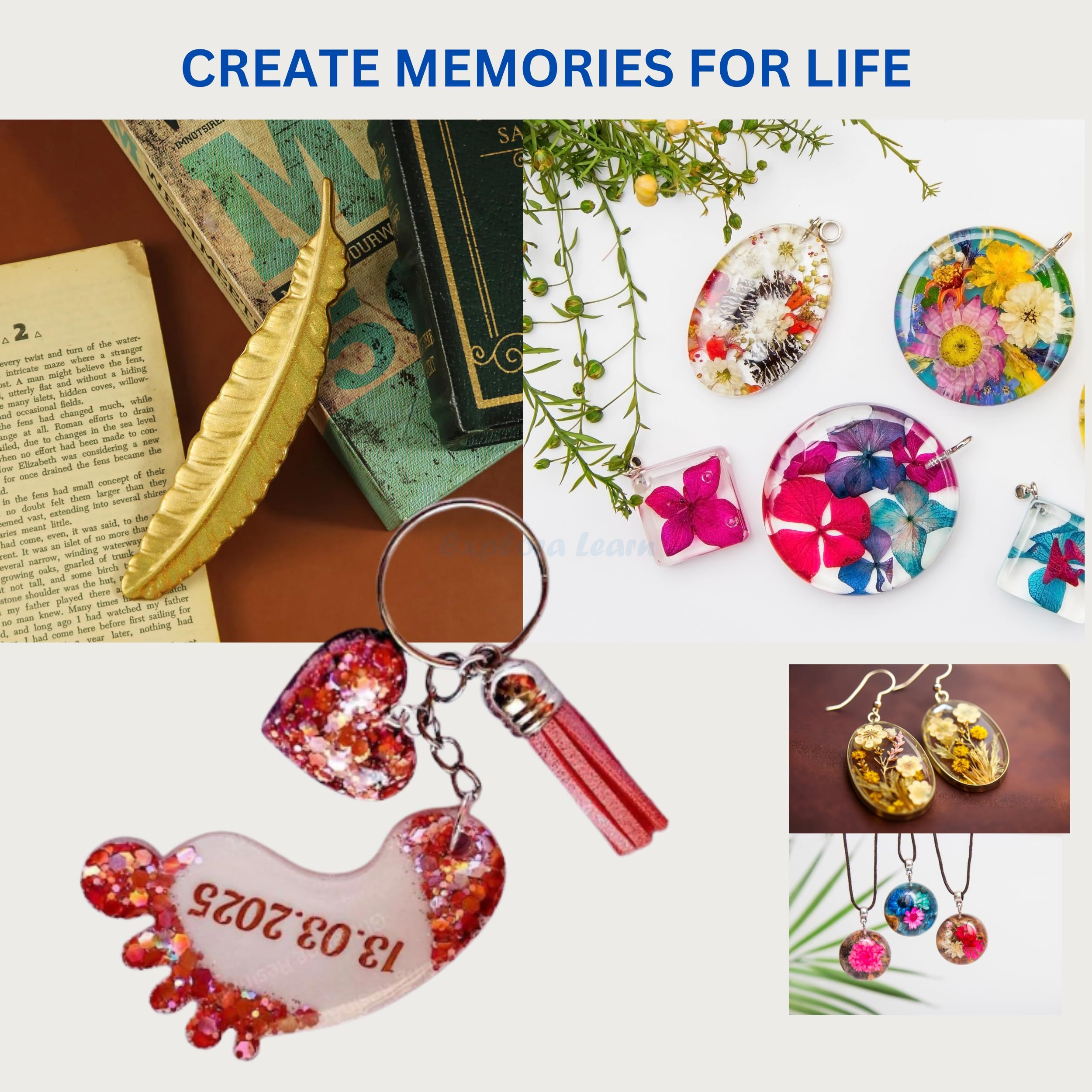 Bring your creative ideas to life with the Exploralearn Ultimate Resin Art Kit a complete resin crafting bundle designed for beginners, hobbyists, students and professional resin artists.This all-in-one kit includes 200gm epoxy resin, high-quality silicone moulds (earring, pendant, feather bookmark & baby foot mould), dried flowers, glitters, mica powders, pigments, and essential accessories for endless DIY creations.Whether you want to design jewelry, create a baby keepsake, craft a beautiful bookmark, or experiment with decorative resin art, this kit provides everything you need for smooth, bubble-free results. With premium moulds and vibrant art materials, you can easily make unique gifts, accessories, home décor, or personalized handmade products.Perfect for gifting, learning, art projects, resin business, and creative exploration the Exploralearn Resin Art Kit delivers quality, value, and hours of crafting joy.