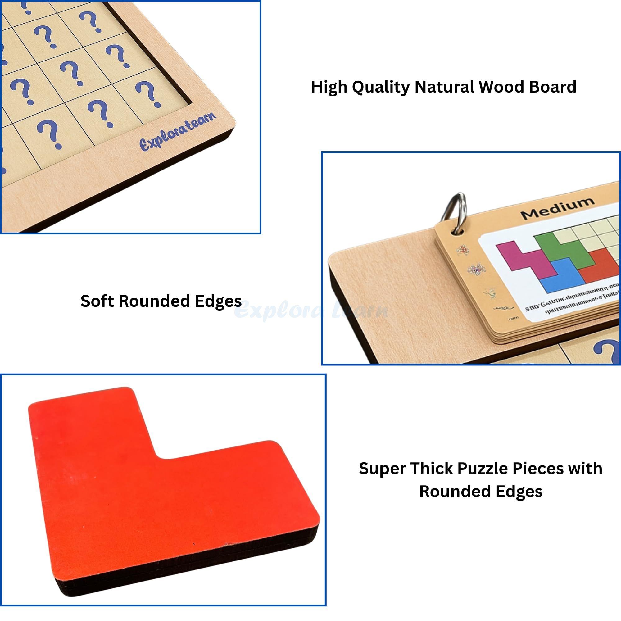 Crafted from 5mm thick smooth wood, the pieces are durable, safe and easy to handle. Comes with a sturdy base board that is compact and long-lasting.