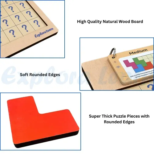 Challenge your brain by arranging colourful wooden pieces to complete patterns and grids. Encourages logical thinking, spatial awareness and structured problem-solving through play.