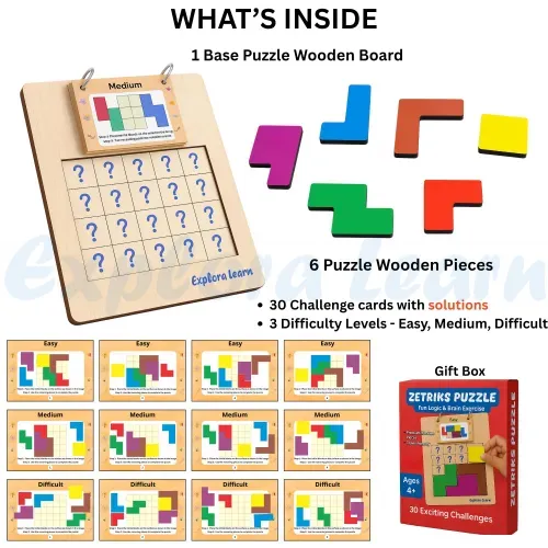 Zetriks Puzzle is a smart, screen-free activity designed to boost logic, focus and problem-solving skills. Inspired by the classic Tetris-style gameplay, this hands-on wooden puzzle offers an engaging brain workout for kids and adults alike.