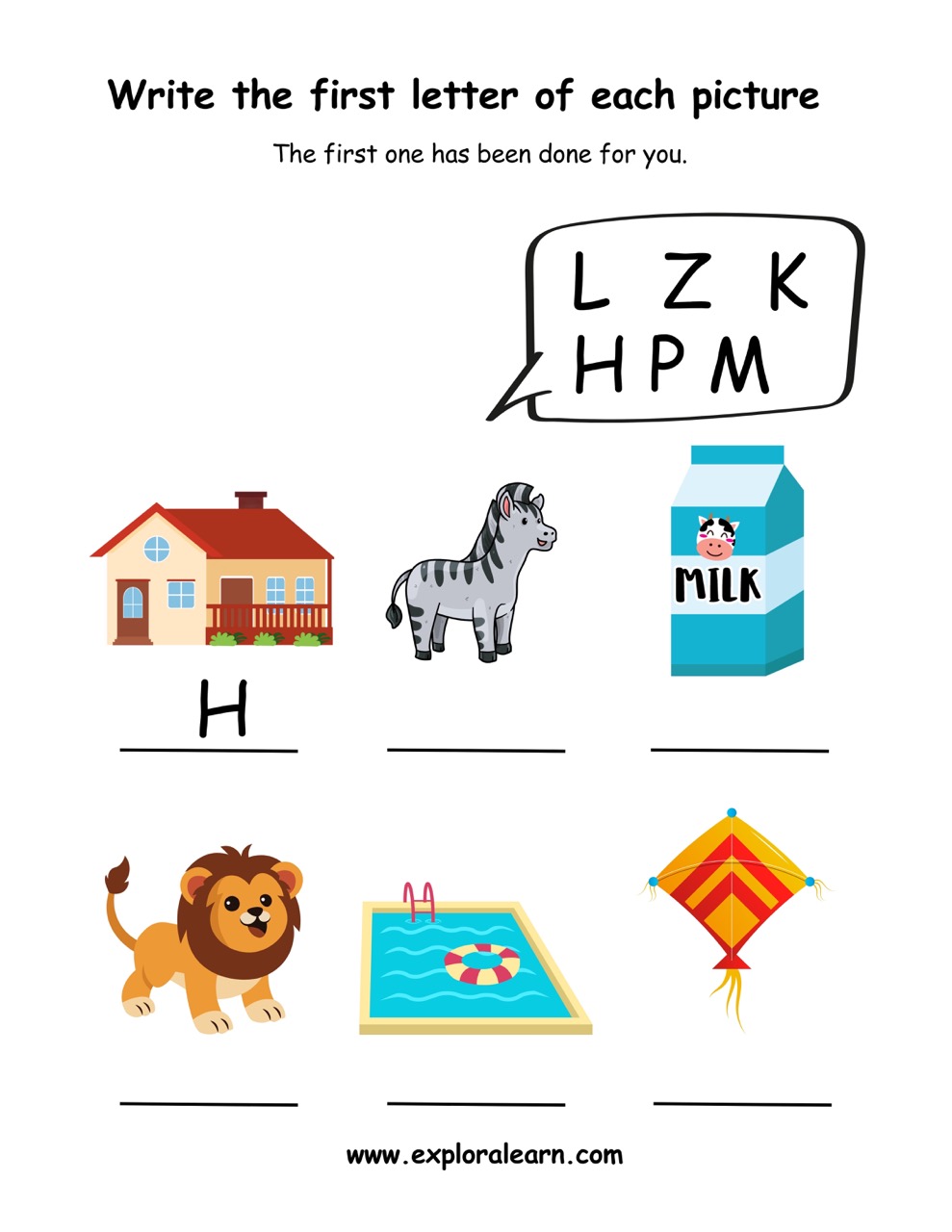 Beginnning Sound Alphabet Worksheet, Practice by Identifying the correct sound. Free Phonics Beginning Sound Worksheet for your child