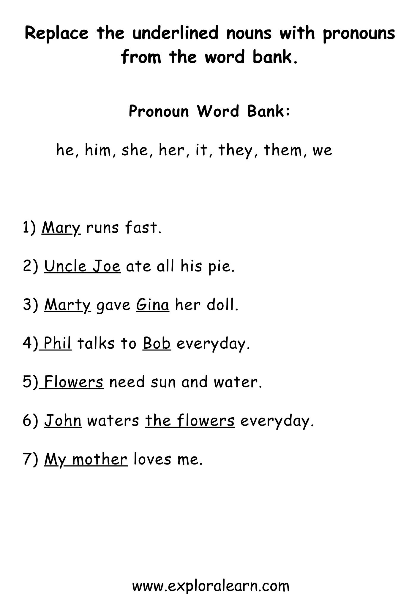 Class 1 English Grammar Worksheet,Identify Pronoun