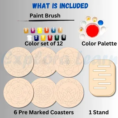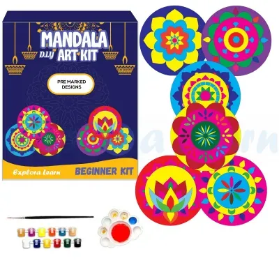 Exploralearn Mandala Art Kit is a complete DIY painting set designed to inspire creativity and mindfulness in young artists. Create beautiful mandala patterns on wooden coasters and proudly display your artwork.