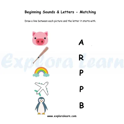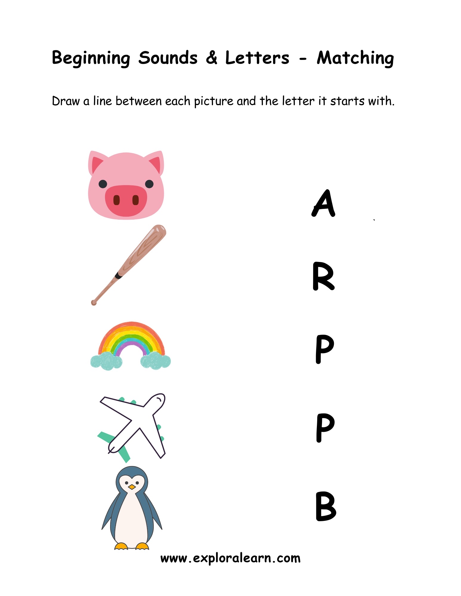 Beginnning Sound Alphabet Worksheet, Practice by Matching the correct sound. Free Phonics Beginning Sound Worksheet for your child