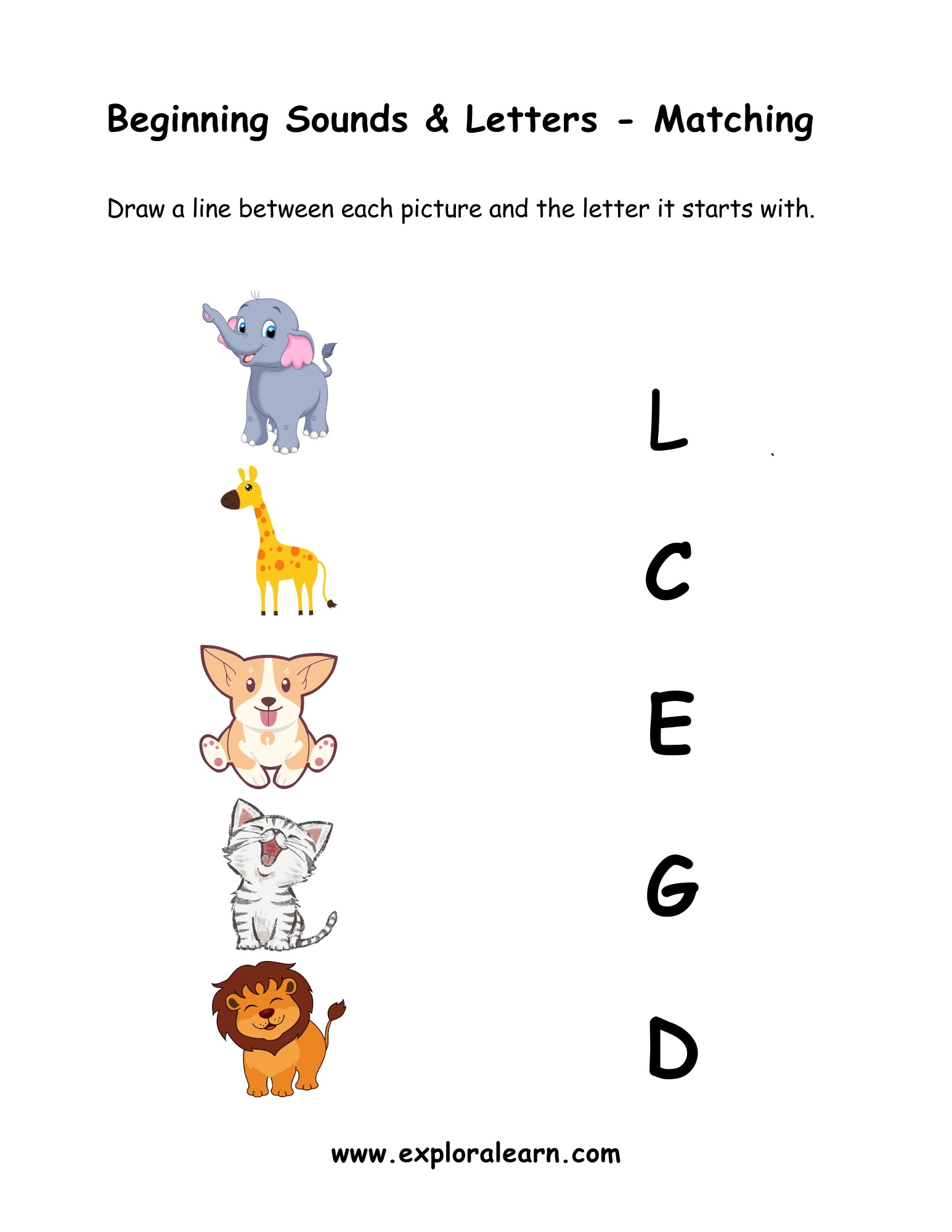 Beginnning Sound Alphabet Worksheet, Practice by Matching the correct sound. Free Phonics Beginning Sound Worksheet for your child