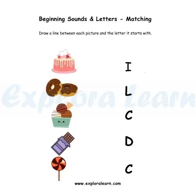 Beginnning Sound Alphabet Worksheet, Practice by Matching the correct sound. Free Phonics Beginning Sound Worksheet for your child