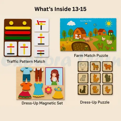 A thoughtfully designed set of 15 Montessori-inspired wooden activities for children aged 2 to 3 years. Encourage hands-on learning, independent play and skill development through engaging, screen-free activities.