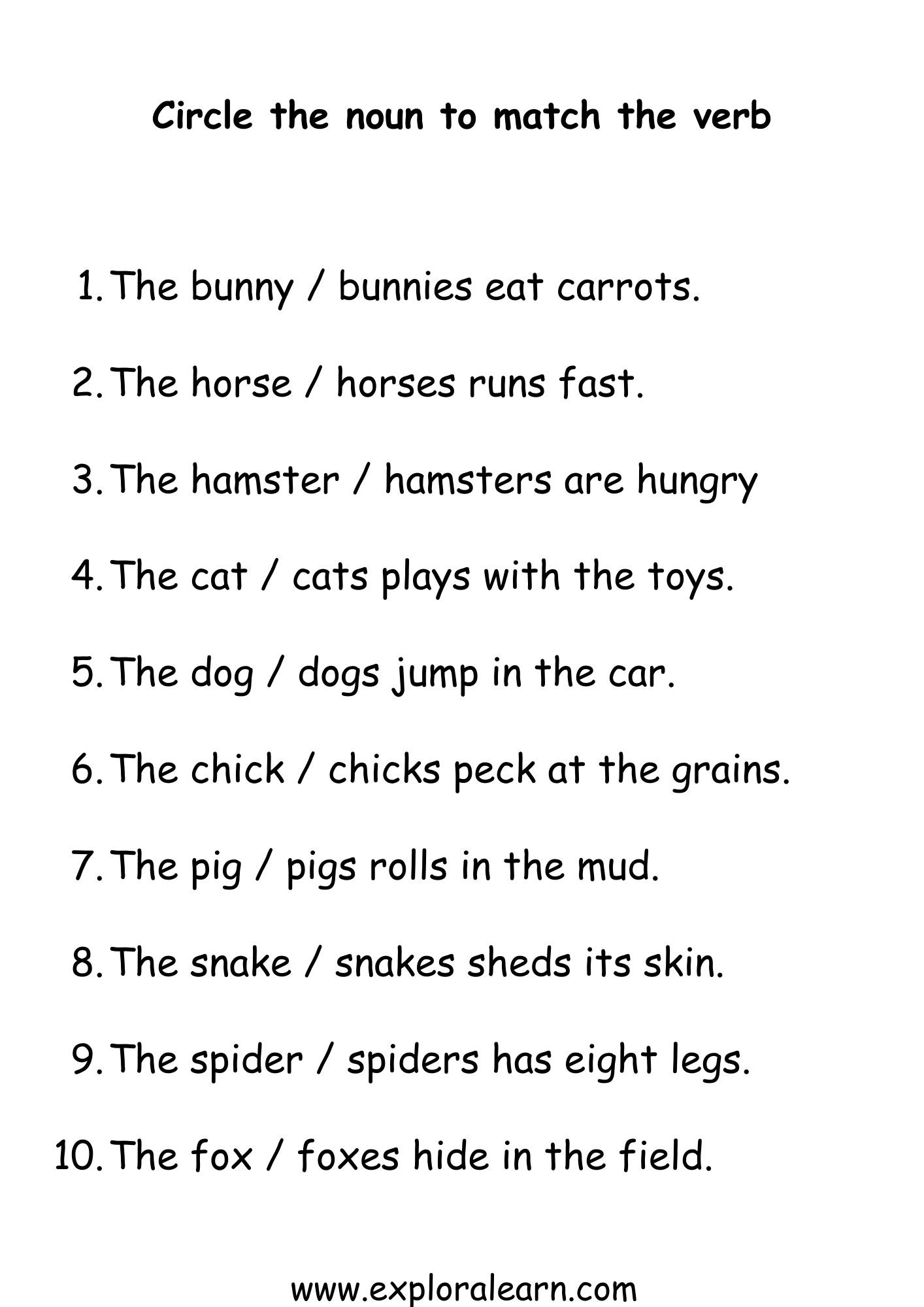 Class 1 English Grammar Worksheet,Plural Nouns and Verbs