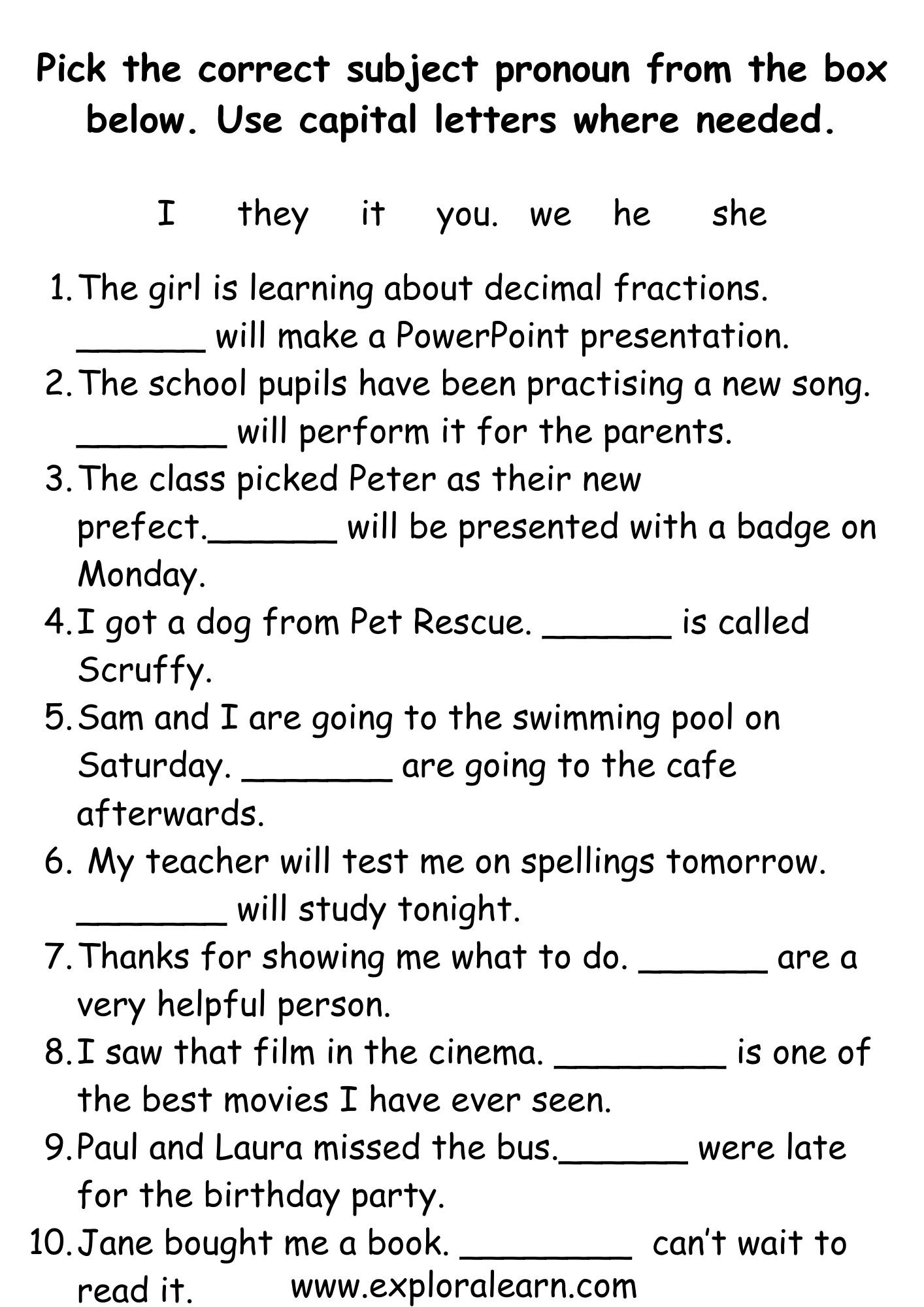 Class 1 English Grammar Worksheet,Practice Pronoun