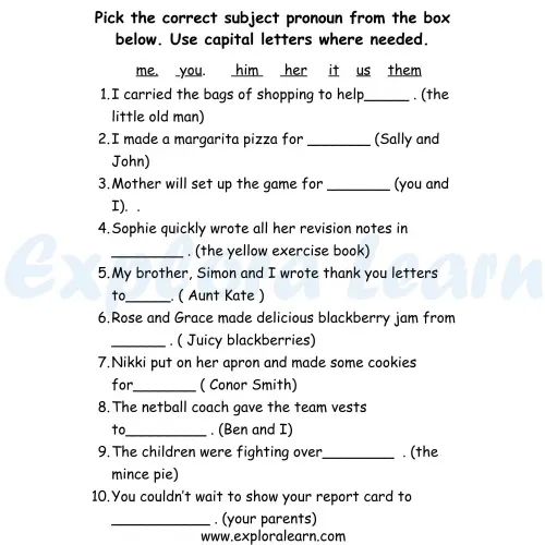 Class 1 English Grammar Worksheet,Practice Pronoun