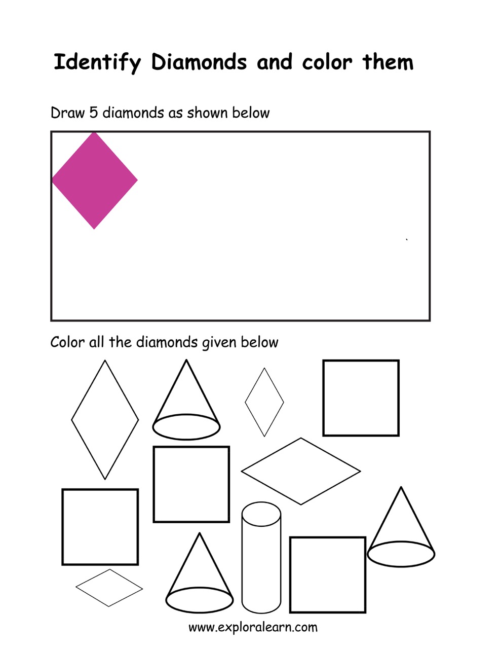 Identify Shapes. Free Shapes and Colours Worksheet for your child