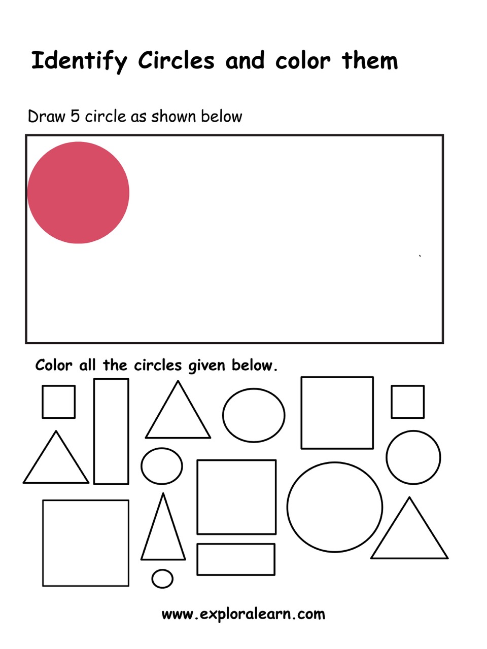 Identify Shapes. Free Shapes and Colours Worksheet for your child