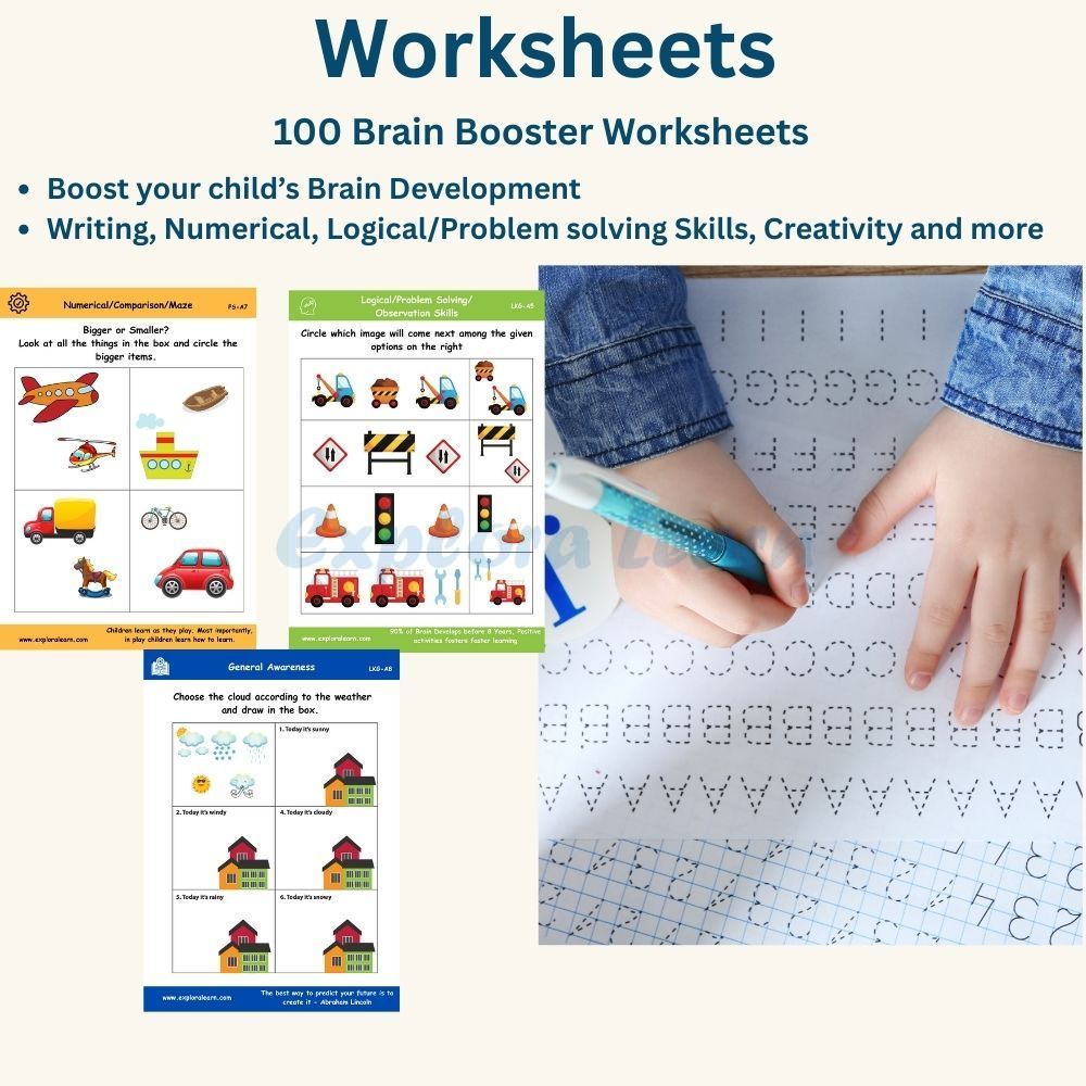 - Maths: Skip counting, ordinals, forward & backward counting, before-after-between, comparisons, addition & subtraction, number line, word problems