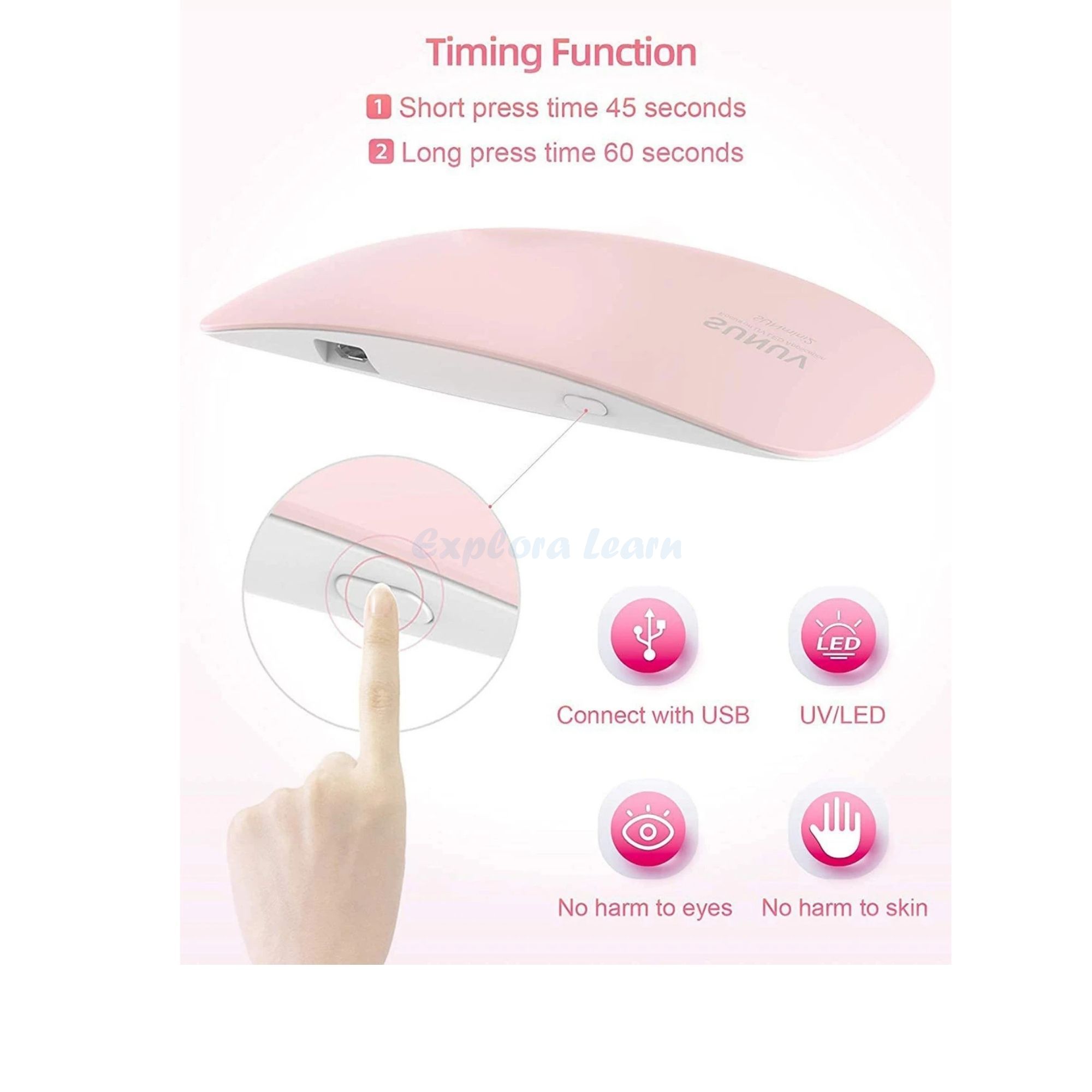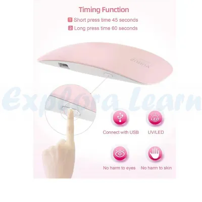 Exploralearn UV Nail Polish Dryer is a compact and efficient device designed for quick drying and curing of gel nail polish, UV gel and nail art. Perfect for achieving salon-like results at home.