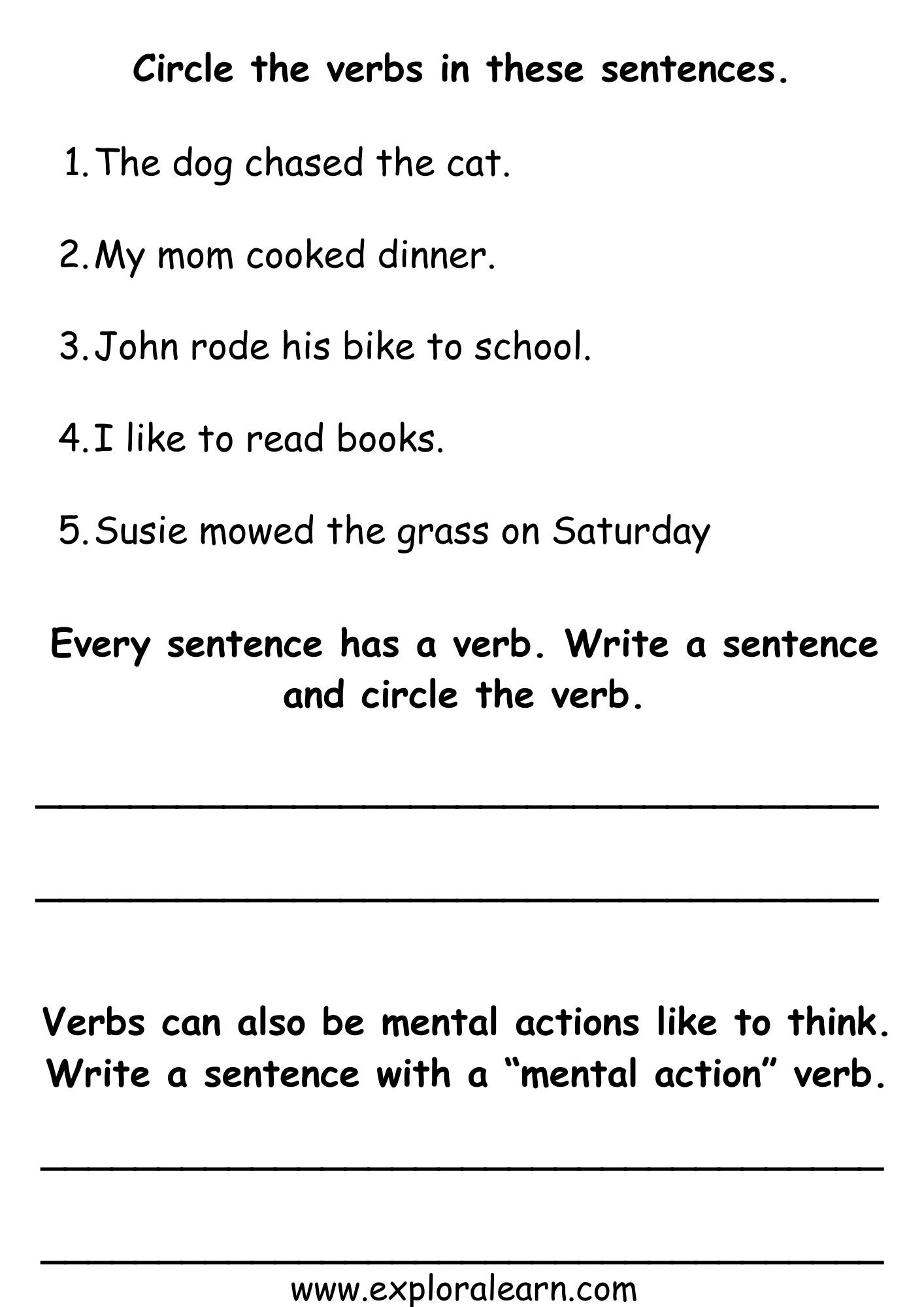 Class 1 English Grammar Worksheet,Verbs Sentences