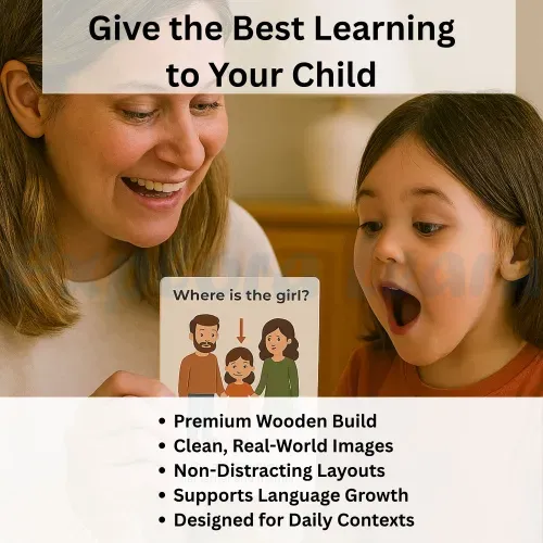 - Promotes full-sentence speech: Encourages kids to say “The cat is under the table” instead of just “cat”